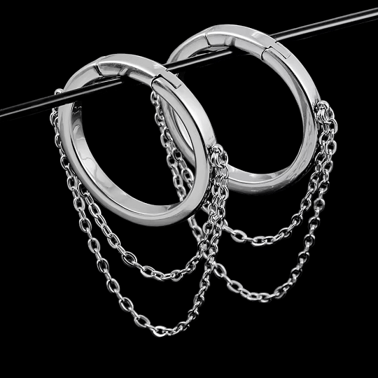 Geometrisches Design mit Kettchen als Hoop Ear weight für gedehnte Ohrlöcher.